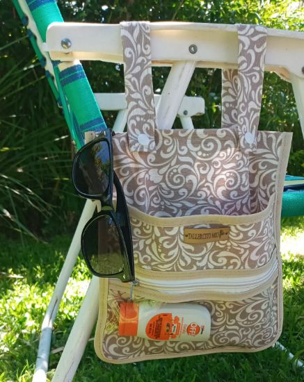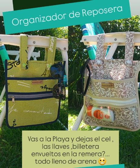 Organizador de Reposera con amplios bolsillos cierre y broches a presion.Tela impermeable,bolsillos en pvc cristal resistente.Material de alta calidad.